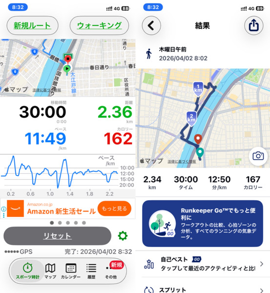 体調管理と家族との朝の時間の関係でウォーキングを短縮バージョンにした為です。