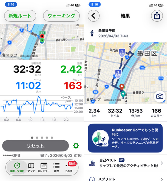 体調管理と家族との朝の時間の関係でウォーキングを短縮バージョンにした為です。