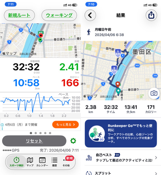 体調管理と家族との朝の時間の関係でウォーキングを短縮バージョンにした為です。