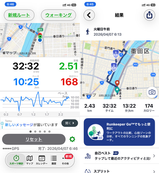 体調管理と家族との朝の時間の関係でウォーキングを短縮バージョンにした為です。