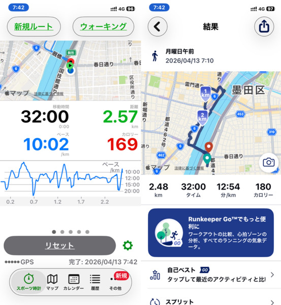 体調管理と家族との朝の時間の関係でウォーキングを短縮バージョンにした為です。